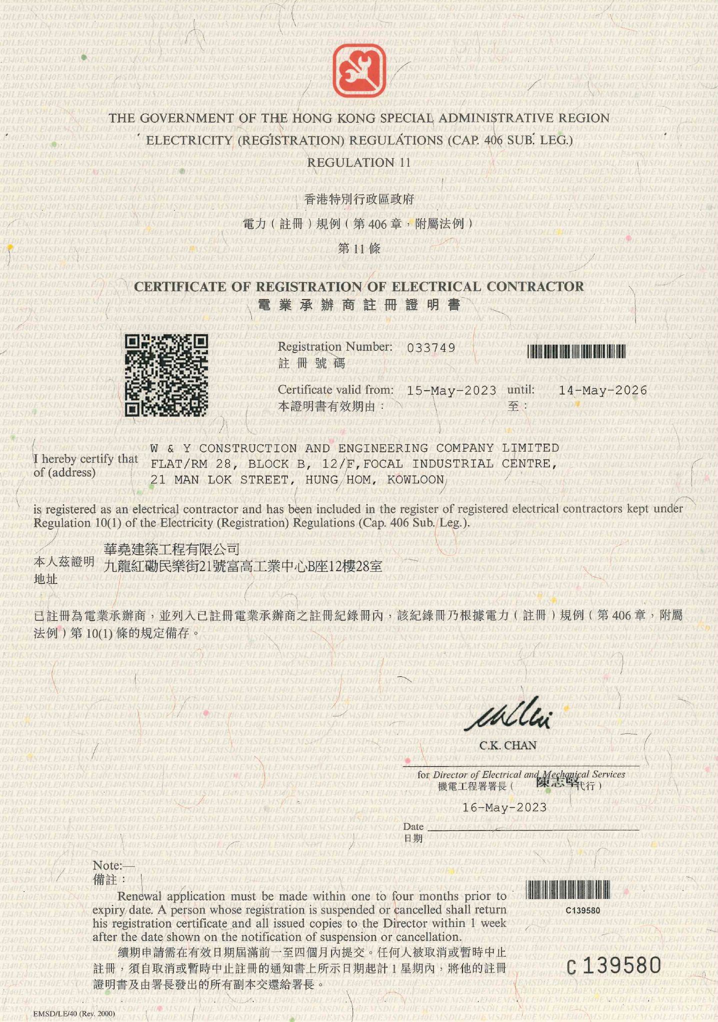 華堯建築工程有限公司為機構註冊及認可的承建商並擁有多項專業資格。